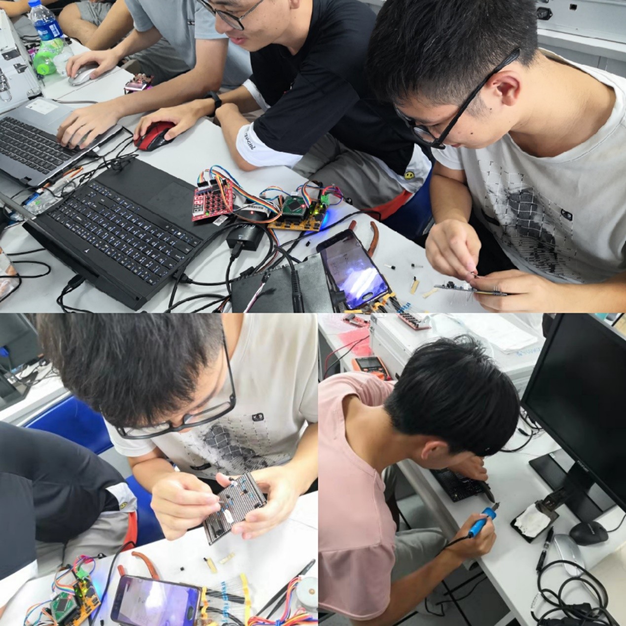 从基础电路的设计,到使用芯片的选择,实验室教师不进行任何干预,同学们可以自主选择不同的元器件、工具,自己动手焊接硬件电路,调试软件程序,因此也开发出了多项极具个性化,功能多样,创意独特的电子制作设计作品。